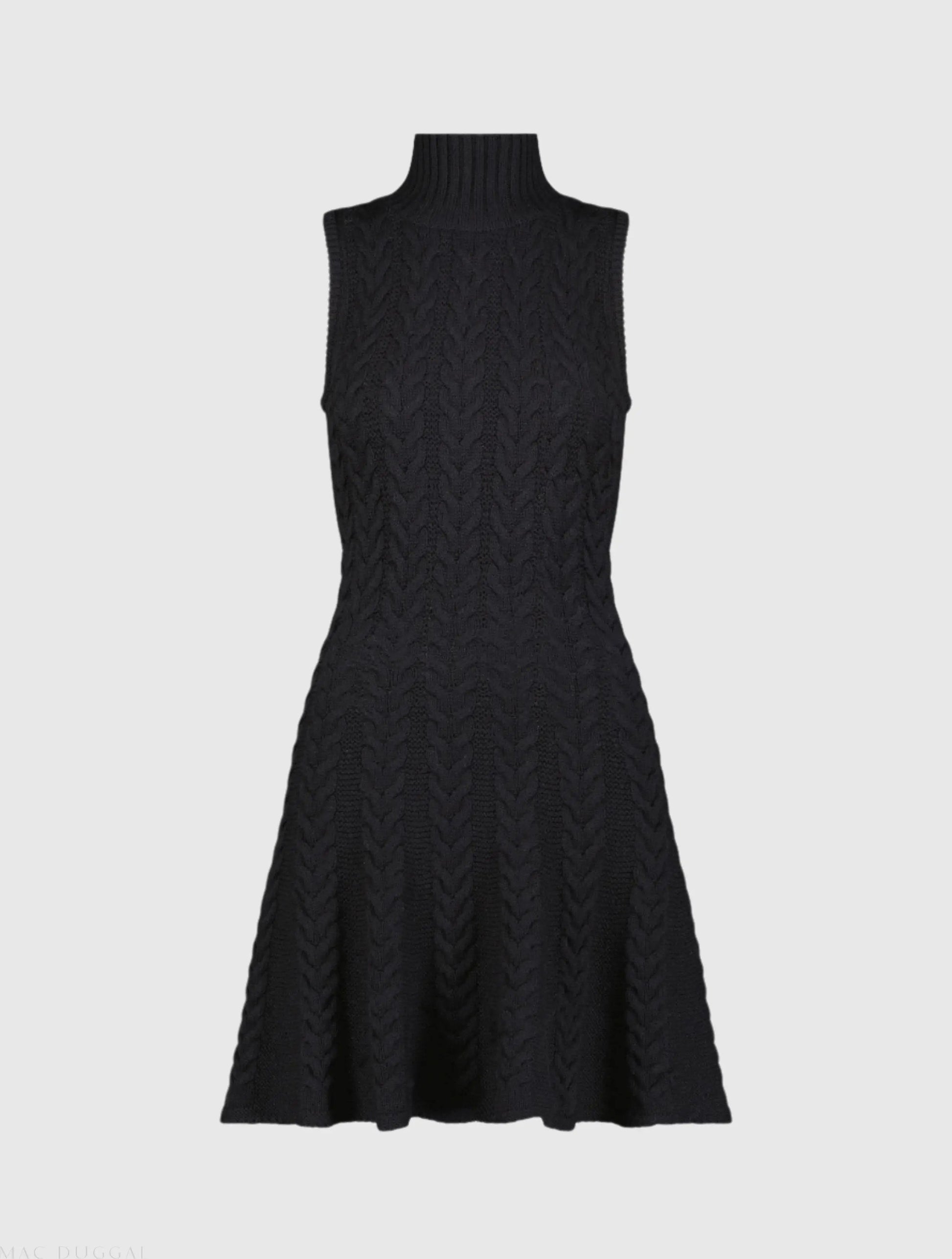 Black Cable Knit Turtle Neck Sleeveless Mini Sweater Knit Dress